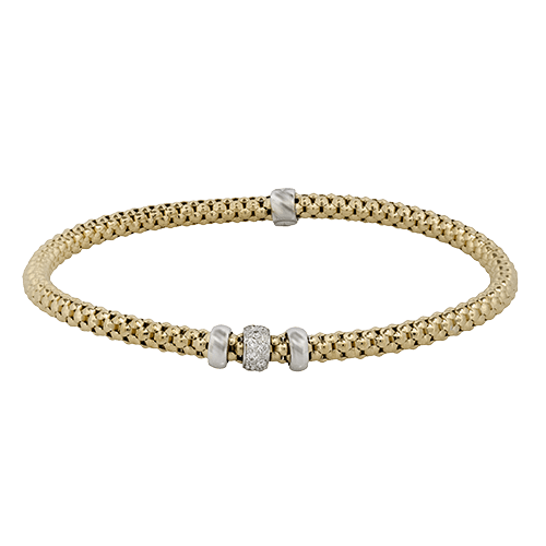 This beautiful bracelet features a woven design with sparkling diamonds set on the center clasp.