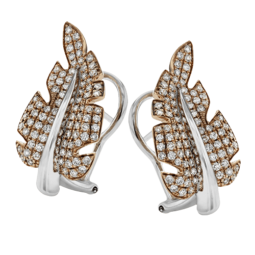 These lovely earrings feature a nature-inspired design and are adorned with brilliant white diamonds.