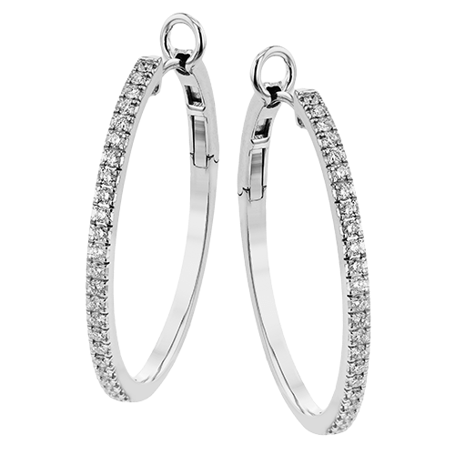 These classic diamond hoops in 18k white gold, sparkle with a half carat of diamonds and a secure hinge closure.