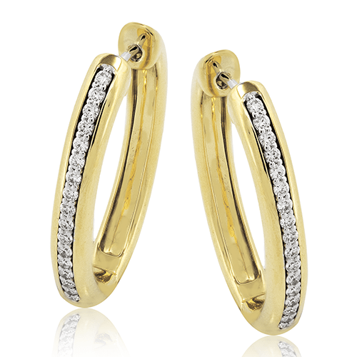 These distinctive hoop earrings feature a two-tone design adorned with shimmering diamonds.