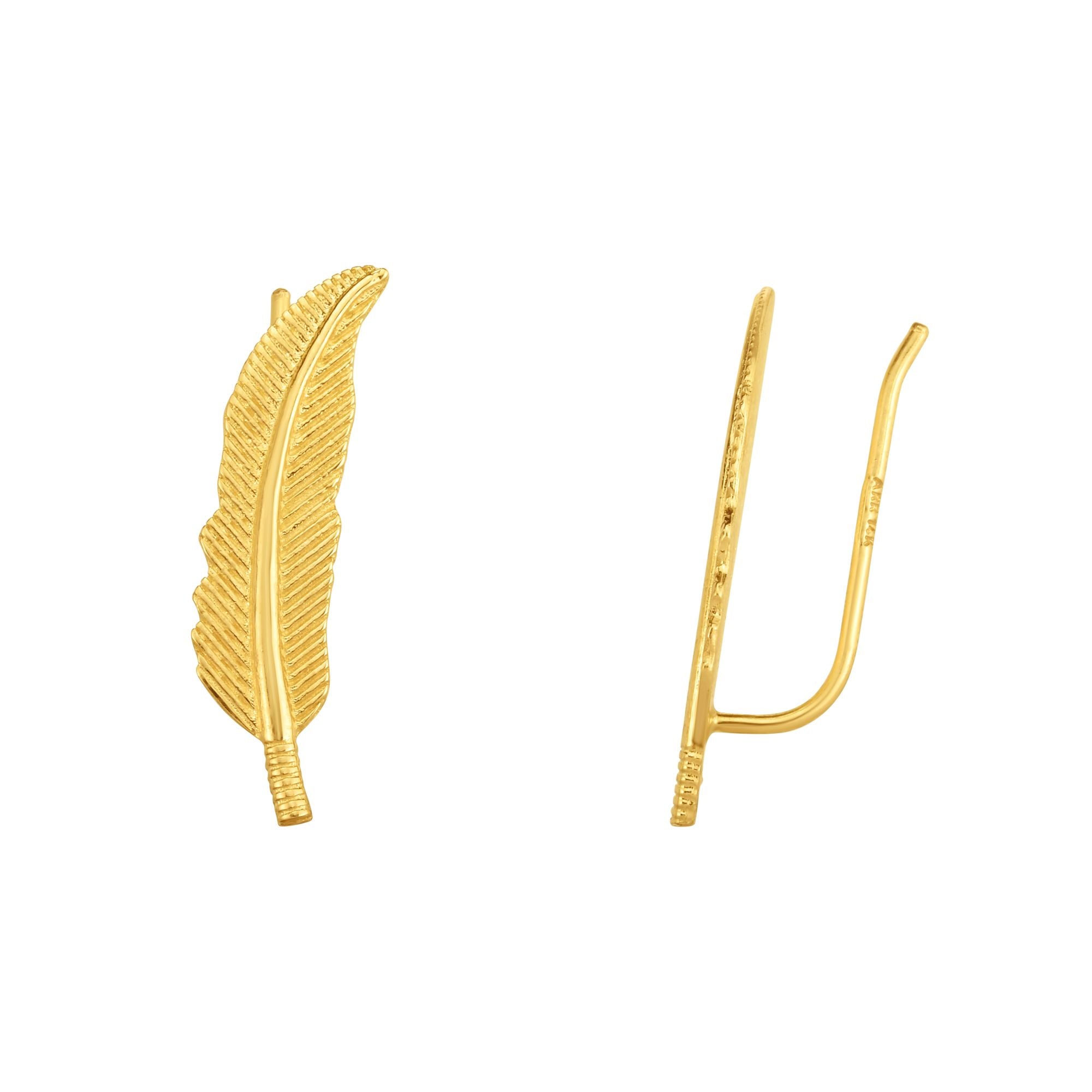 Yellow Gold Diamond Cut/ Textured Ear Climber Earring