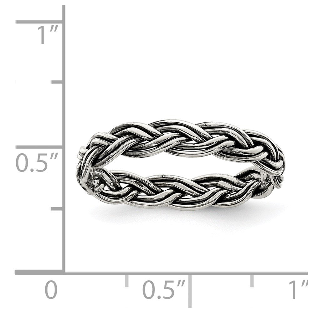 Sterling Silver Antiqued Weave 3.5mm Women's Ring
