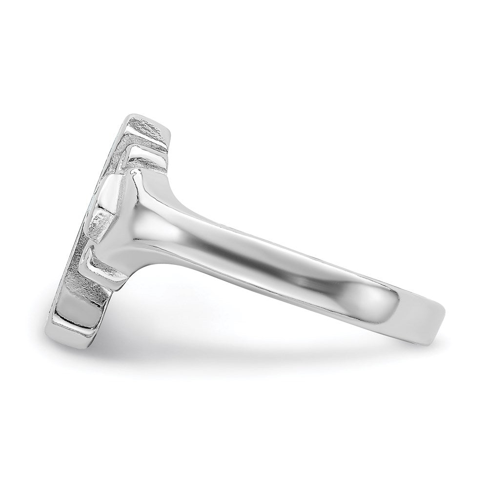 Sterling Silver Rhodium-plated Blue Inlay Created Opal Cross Ring