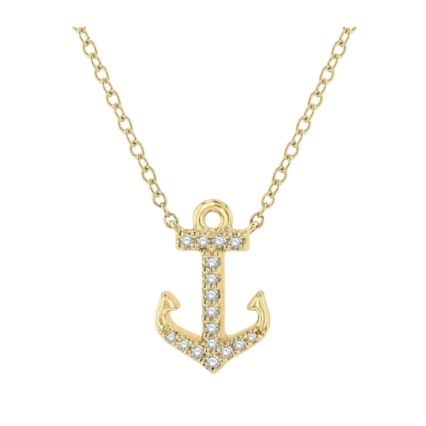 • Details: 1/10 Ctw Anchor Round Cut Diamond Petite Fashion Pendant With Chain in 10K Yellow Gold