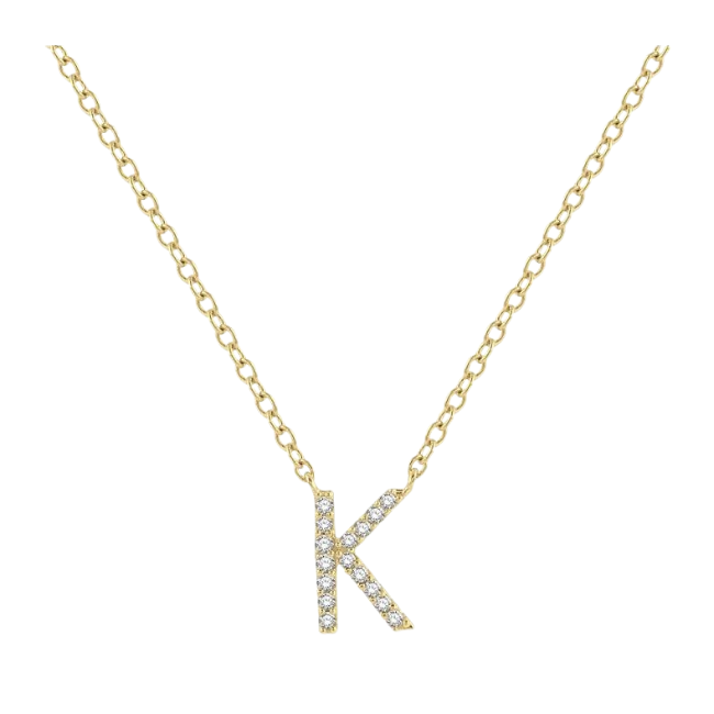Initial pendants offer a personalized feel. Whether it is wearing one's own initials or the initials of a loved one, the initial pendant is a popular choice. It can be worn by itself or layered with other dainty pendants. So, if you have a 'K' initial in mind, this initial pendant would be a perfect buy. It is also decorated with round-cut diamonds to enhance its appeal. There is a total of 16 prong set round cut diamonds embellishing the initial pendant. A Cat chain carries the pendant, both of which are styled in 10 karat yellow gold. Total diamond weight is 1/20 ctw.