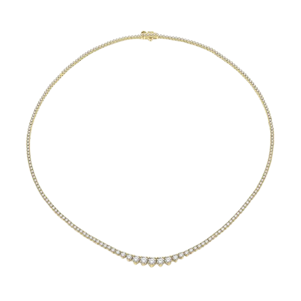 A stunning diamond necklace, this offers gorgeous appeal and radiance. It is the kind of necklace every woman would want to own. The necklace features an all-round diamond studded setting that gives it a most eye-catching and magnificent look. A total of 212 prong set round cut diamonds embellish the necklace, giving it a rich sparkle. A lobster clasp secures the necklace, which is fashioned in a rhodium finish 14 karat yellow gold. Total diamond weight is 5 ctw.