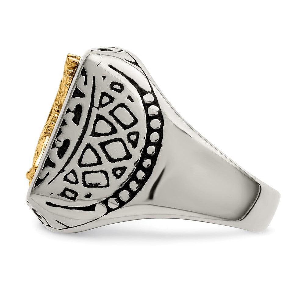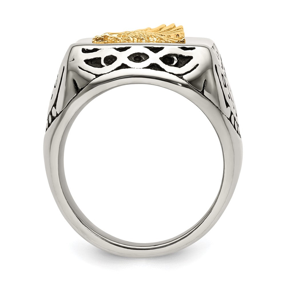 Chisel Stainless Steel with 14k Gold Accent Antiqued and Polished Eagle Ring