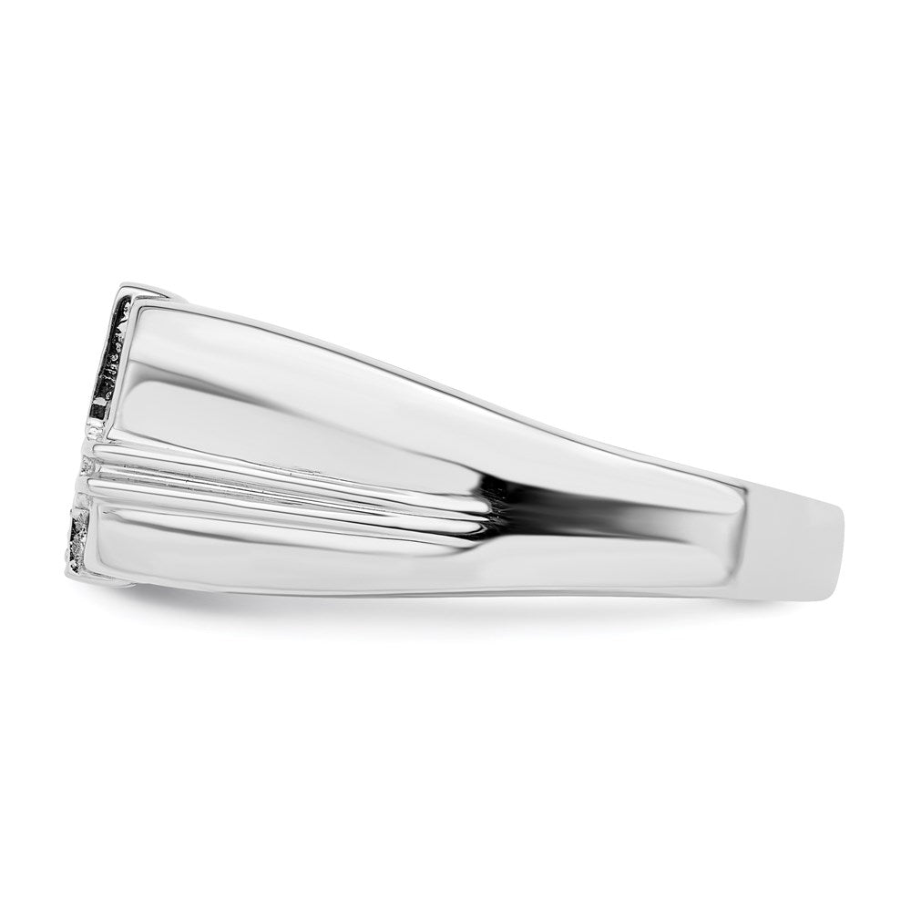 White Night Sterling Silver Rhodium-plated Diamond and Black Onyx Cross Men's Ring