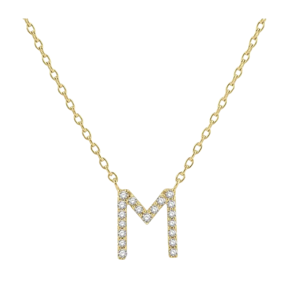 Initial pendants offer a personalized feel. Whether it is wearing one's own initials or the initials of a loved one, the initial pendant is a popular choice. It can be worn by itself or layered with other dainty pendants. So, if you have an 'M' initial in mind, this initial pendant would be a perfect buy. It is also decorated with round-cut diamonds to enhance its appeal. There is a total of 19 prong set round cut diamonds embellishing the initial pendant. A Cat chain carries the pendant, both of which are styled in 14 karat yellow gold. Total diamond weight is 1/20 ctw.