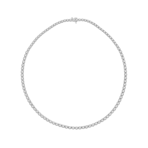 • Details: 15 ctw Round Cut Diamond Tennis Necklace in 14K White Gold