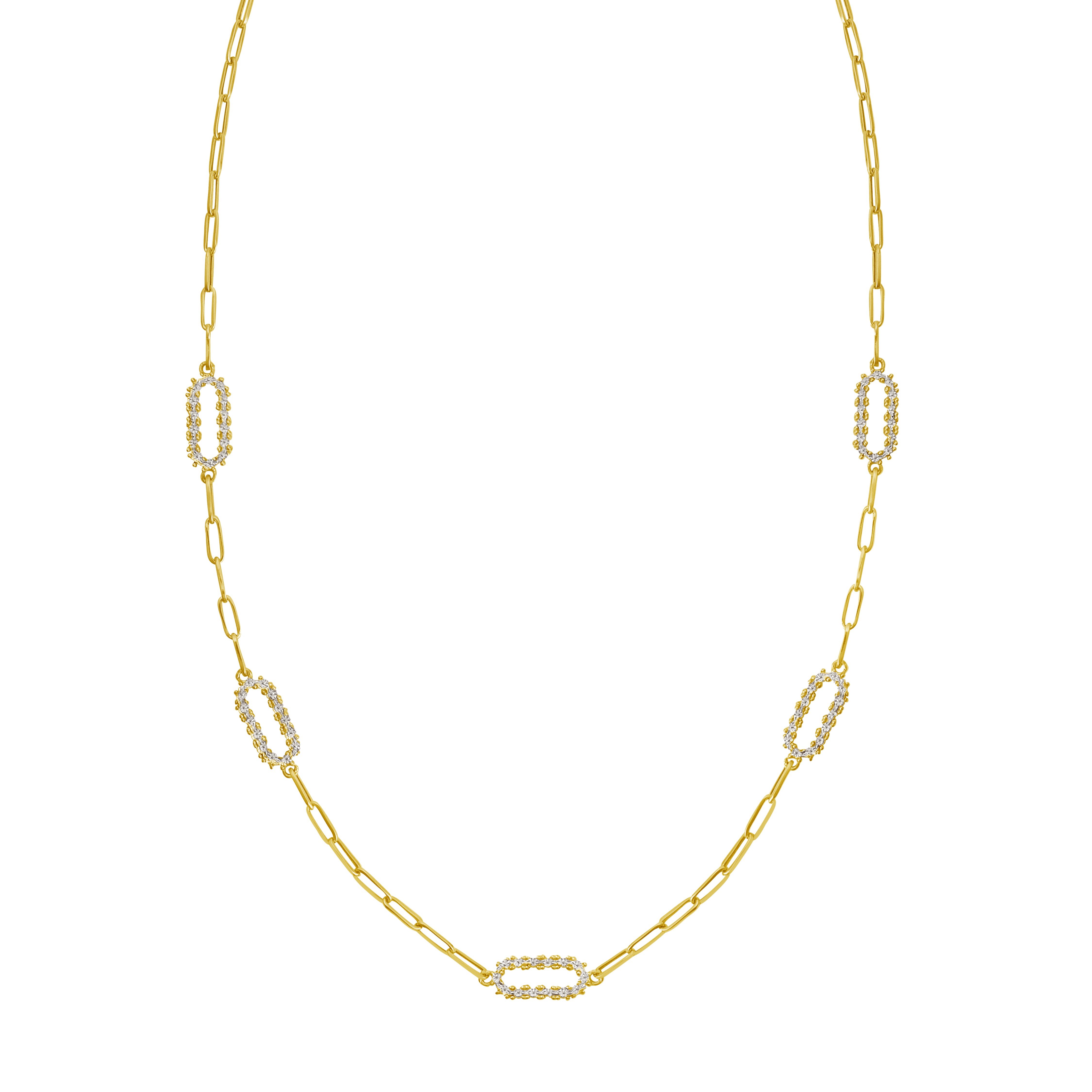 14K Yellow Gold Polished & Diamond Cut Paperclip Link Diamon'Oro Necklace with Lobster Clasp