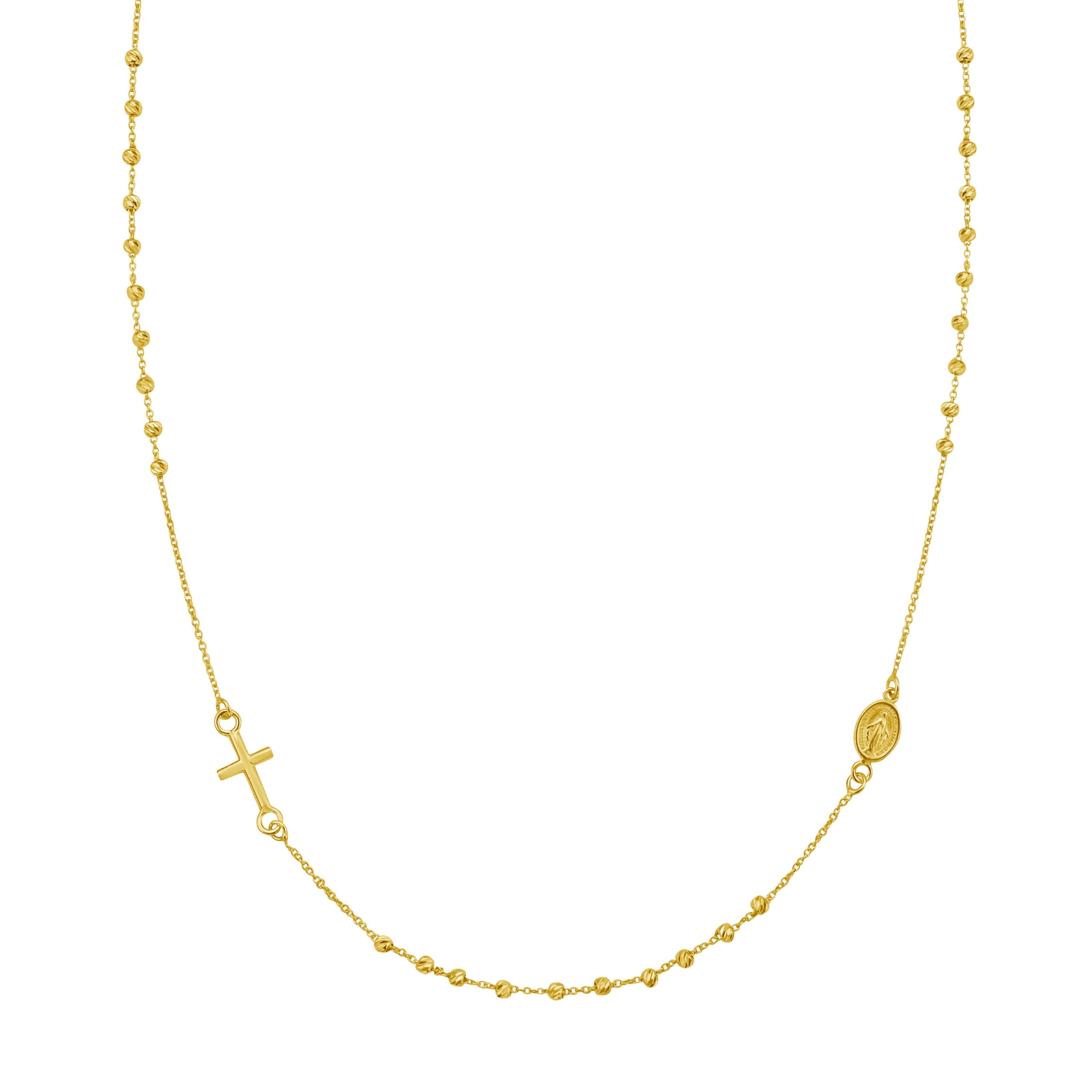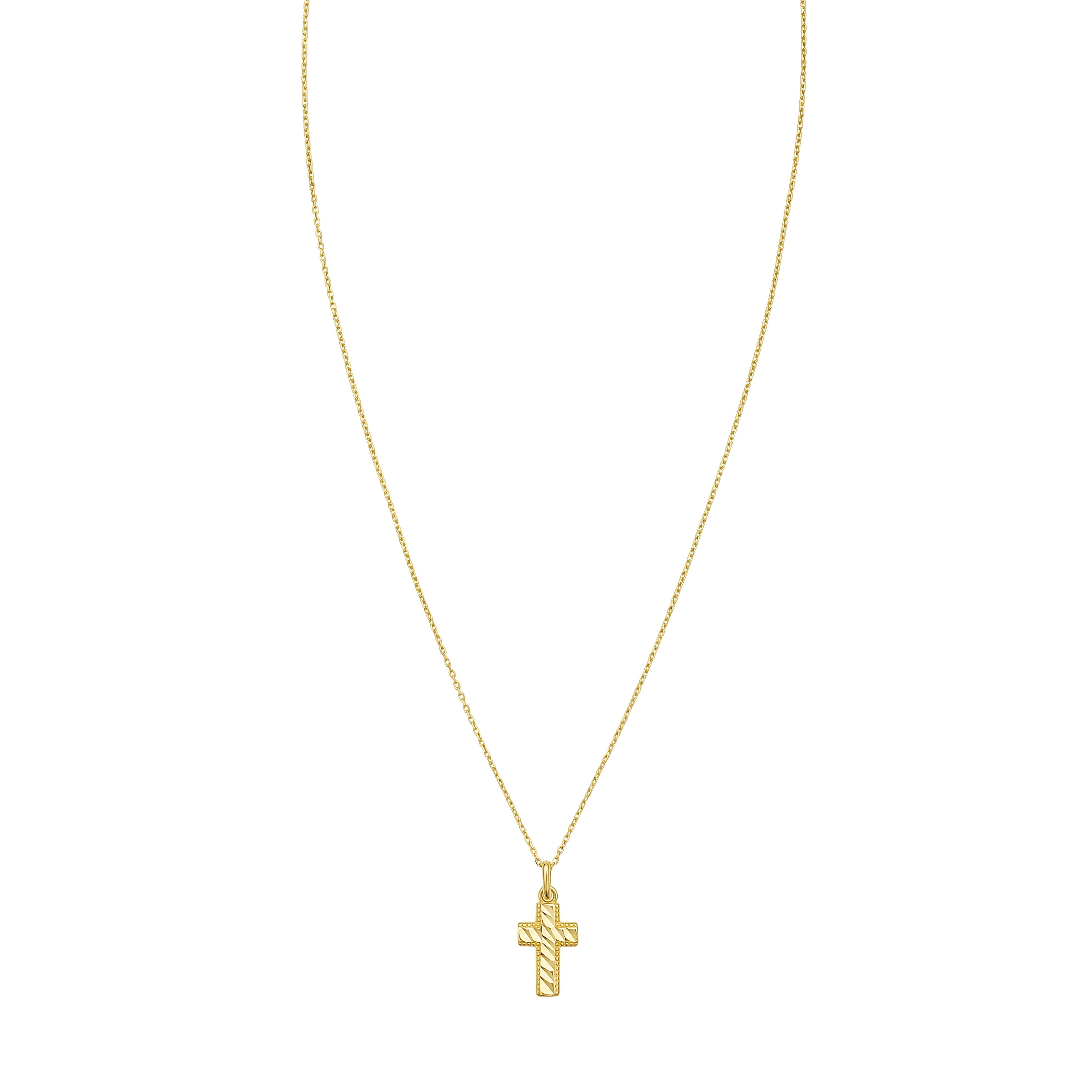 14K Yellow Gold Diamond-Cut & Polished Textured Cross on Cable Chain with Spring Ring Clasp.