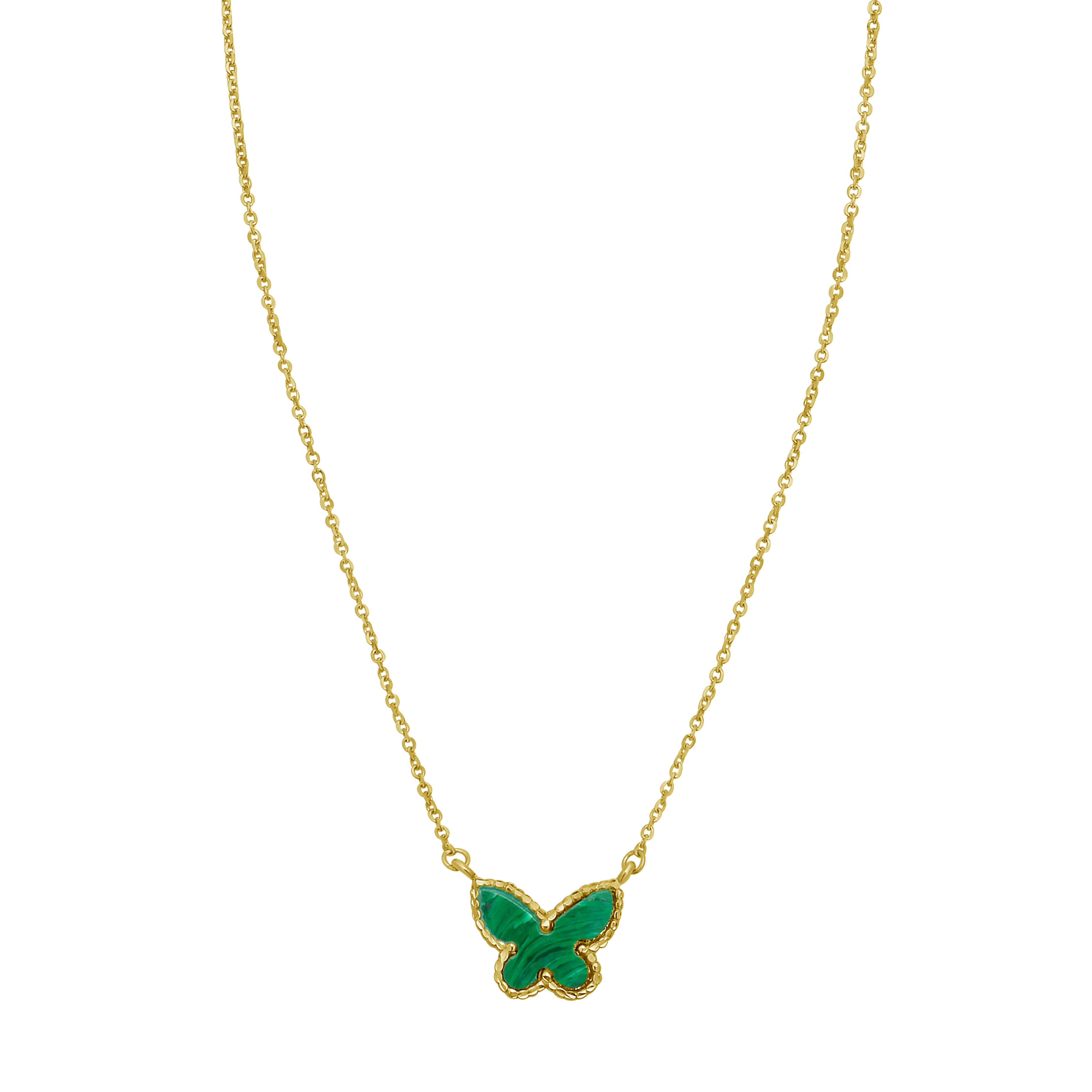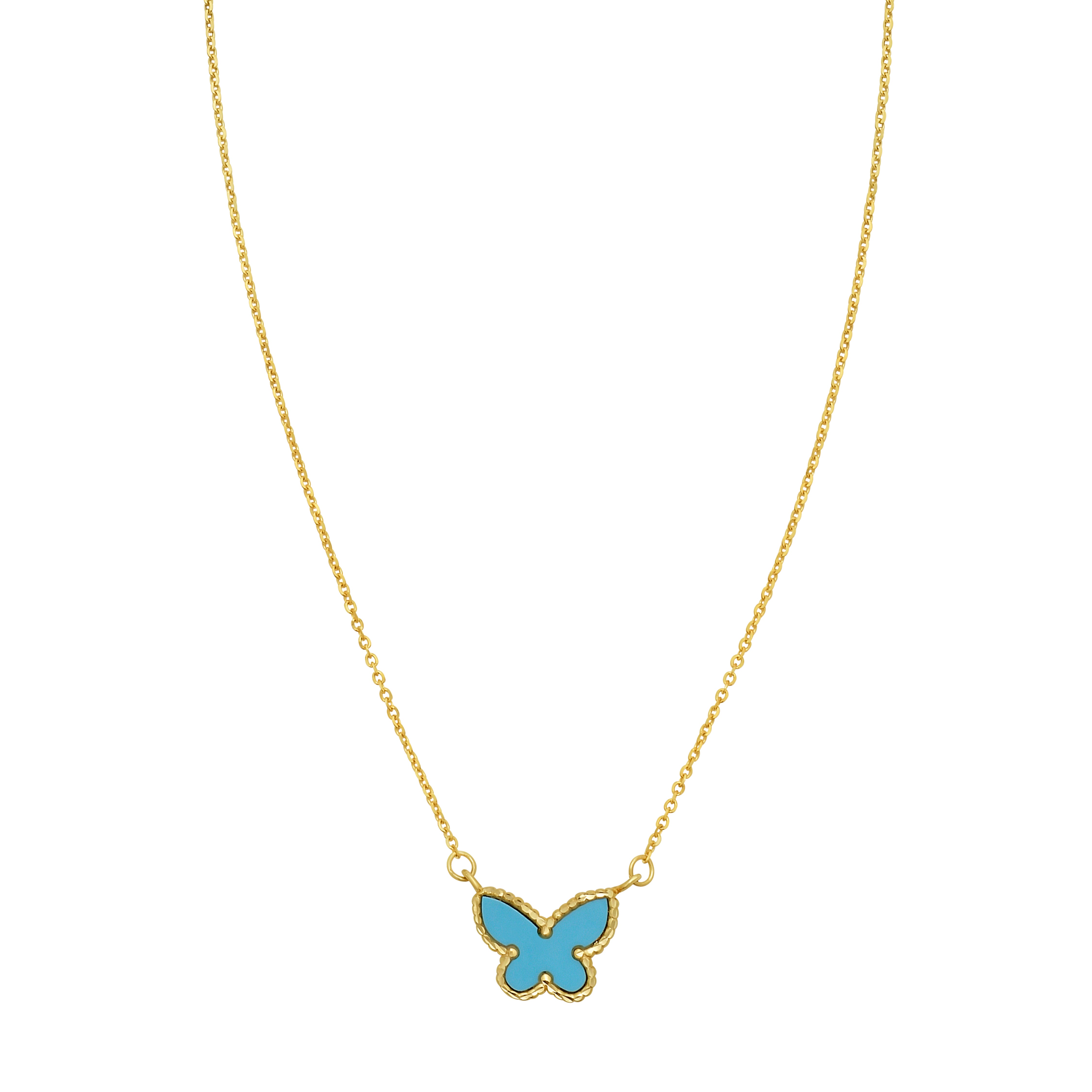14K Yellow Gold Polished Primavera Mother of Pearl Butterfly Necklace with Lobster Clasp Including 2" Extender