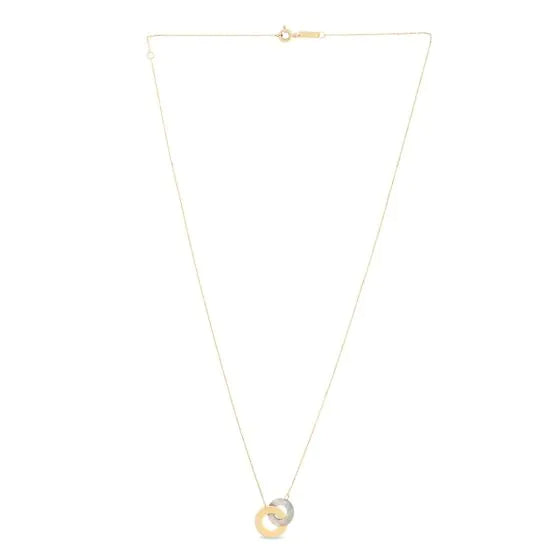 14K Polished Yellow Gold & Mother of Pearl Circles Necklace with Spring Ring Clasp. Total length with jump ring at