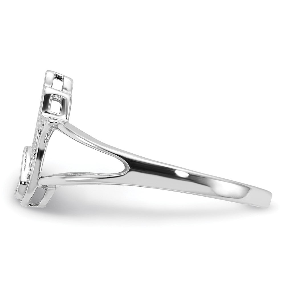 Sterling Silver Rhodium-plated CZ Heart Hamsa Ring