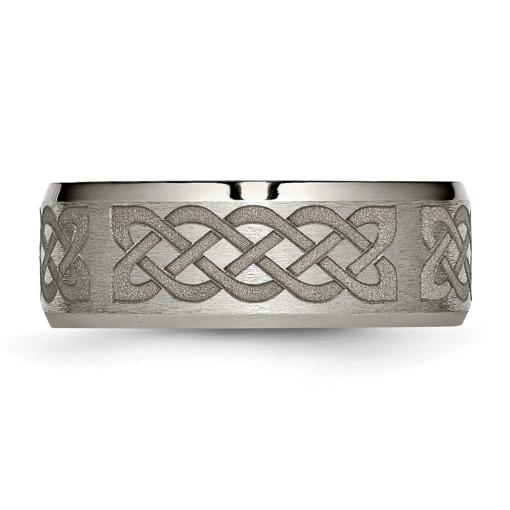 Chisel Titanium Brushed and Polished Celtic Laser Design 8mm Beveled Edge Band