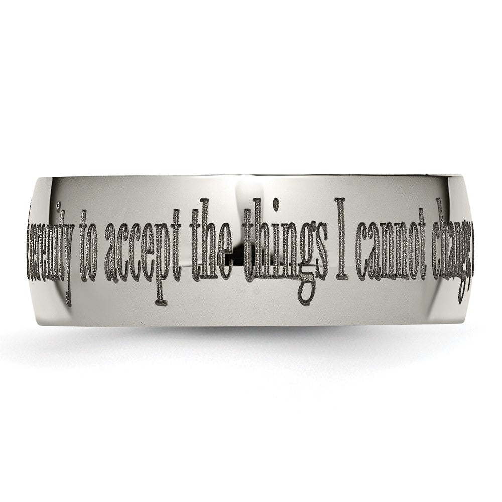 Chisel Titanium Polished Serenity Prayer Laser Design 8mm Band