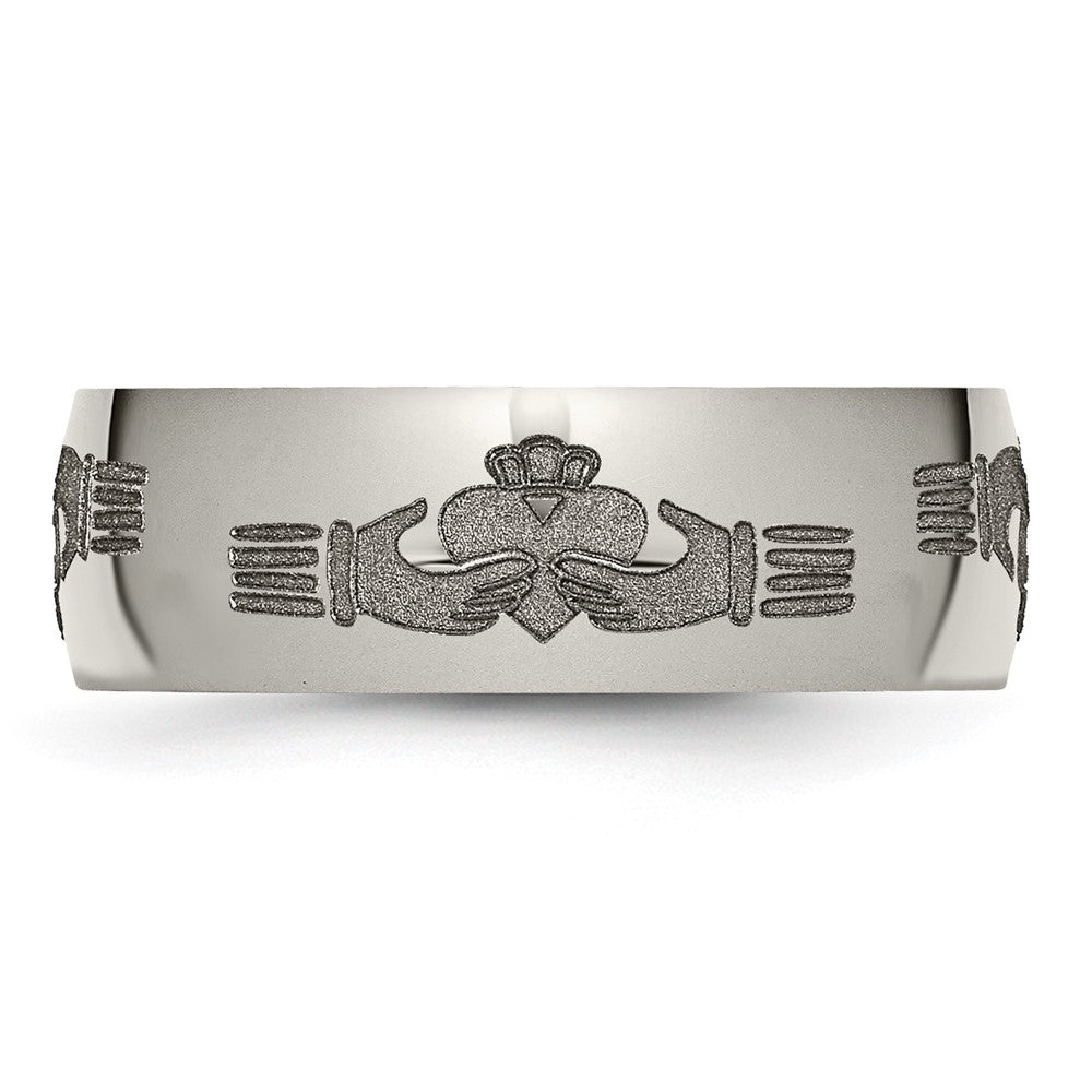 Chisel Titanium Polished Claddagh Laser Design 8mm Band