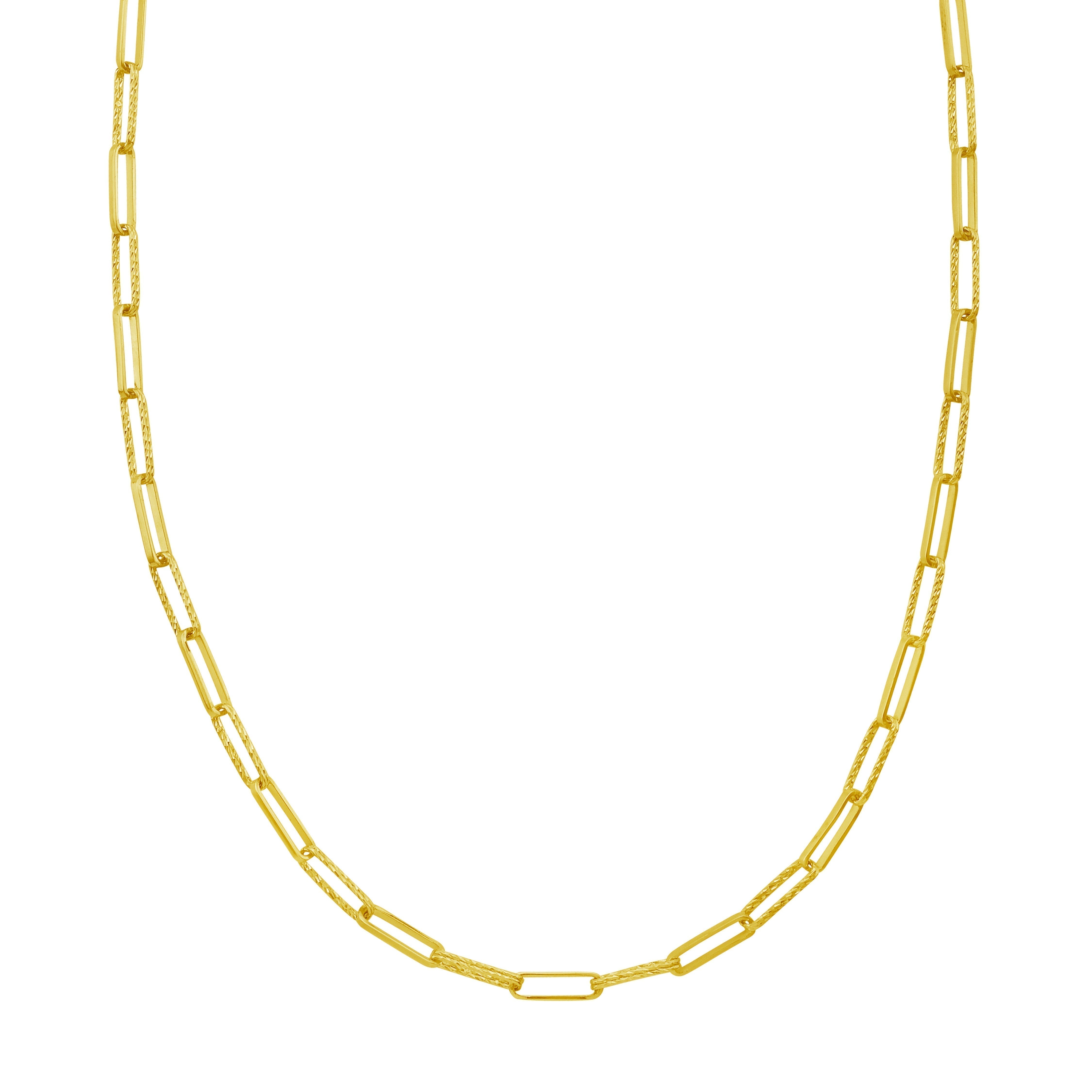 14K Yellow Gold Mini Diamante Paperclip Chain Necklace with Lobster Clasp