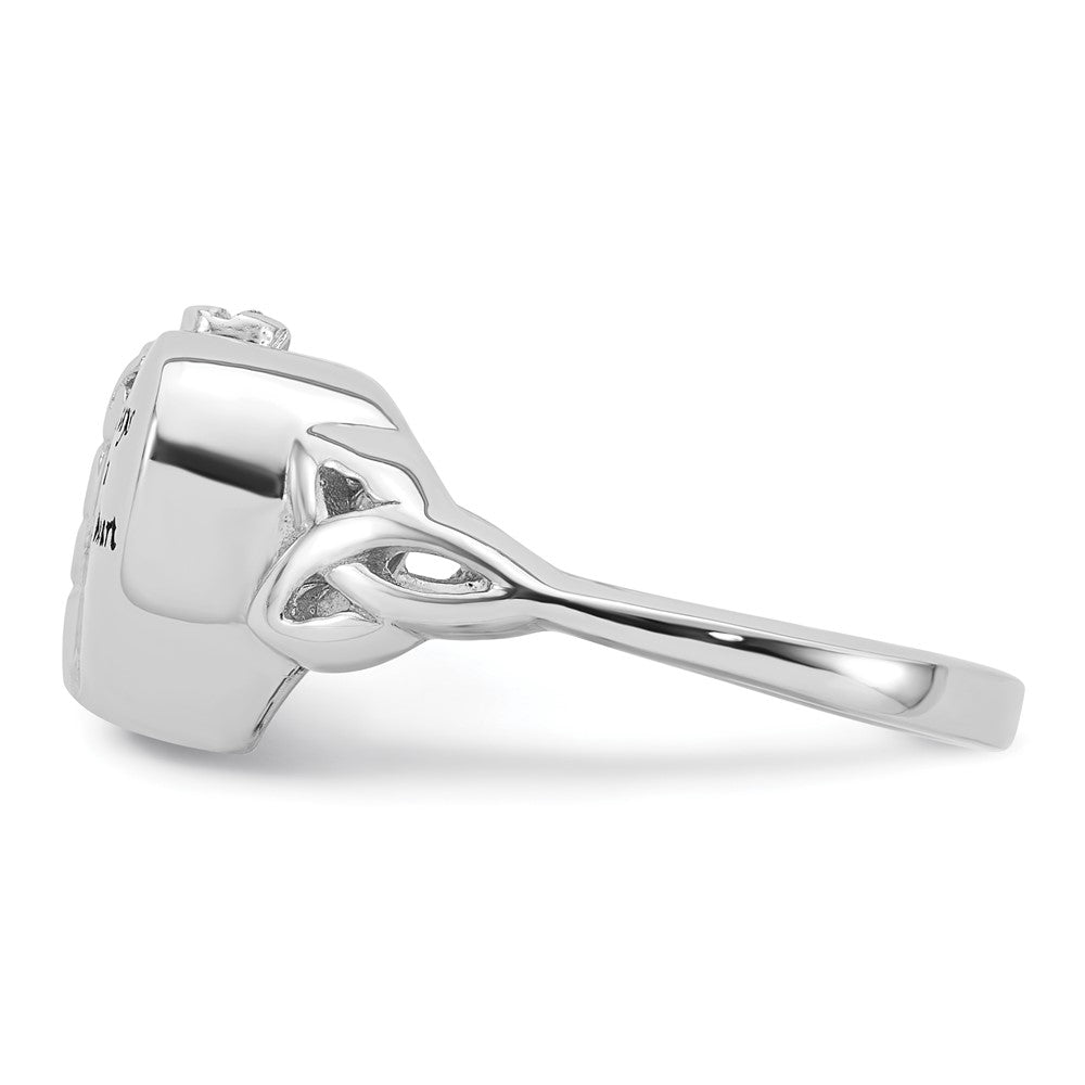 Sterling Silver Rhod-plated Enameled Celtic Knot Heart ALWAYS IN MY HEART Ash Holder Size 6 Ring