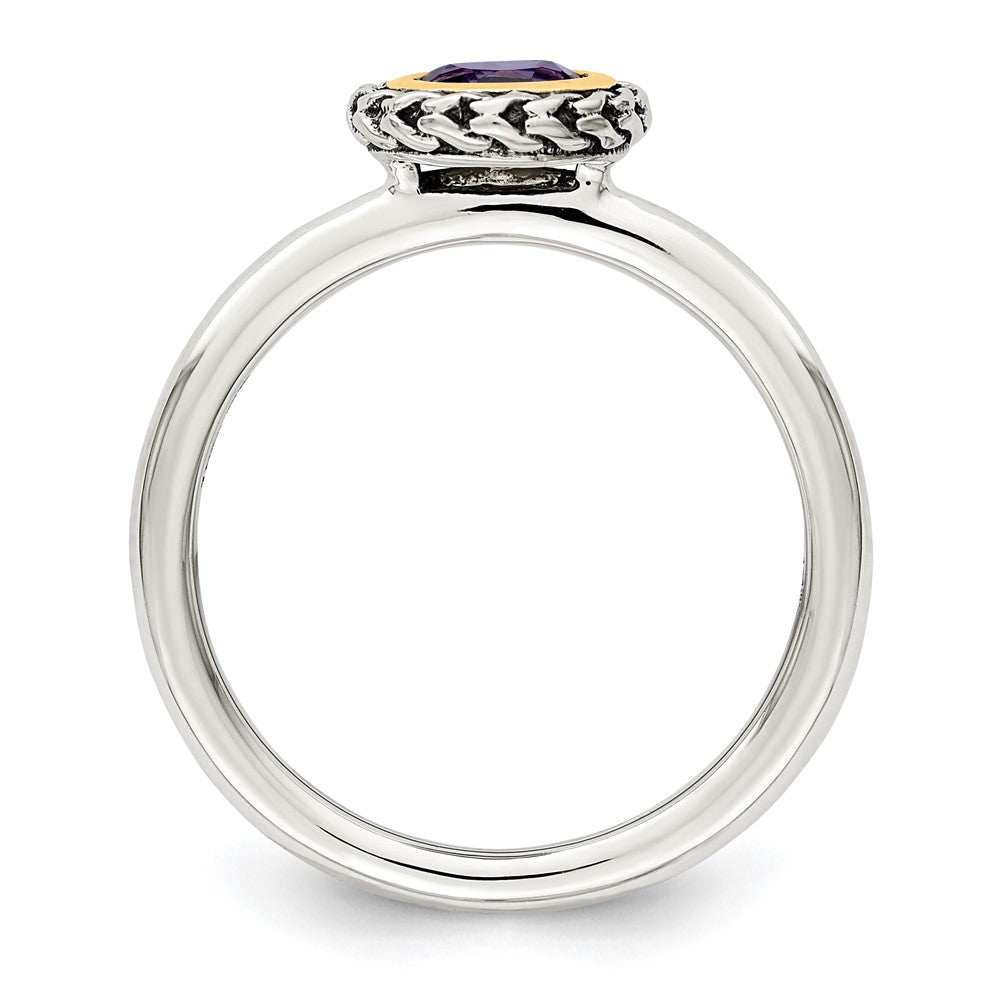 Shey Couture Sterling Silver with 14K Accent Antiqued Round Bezel Amethyst Ring