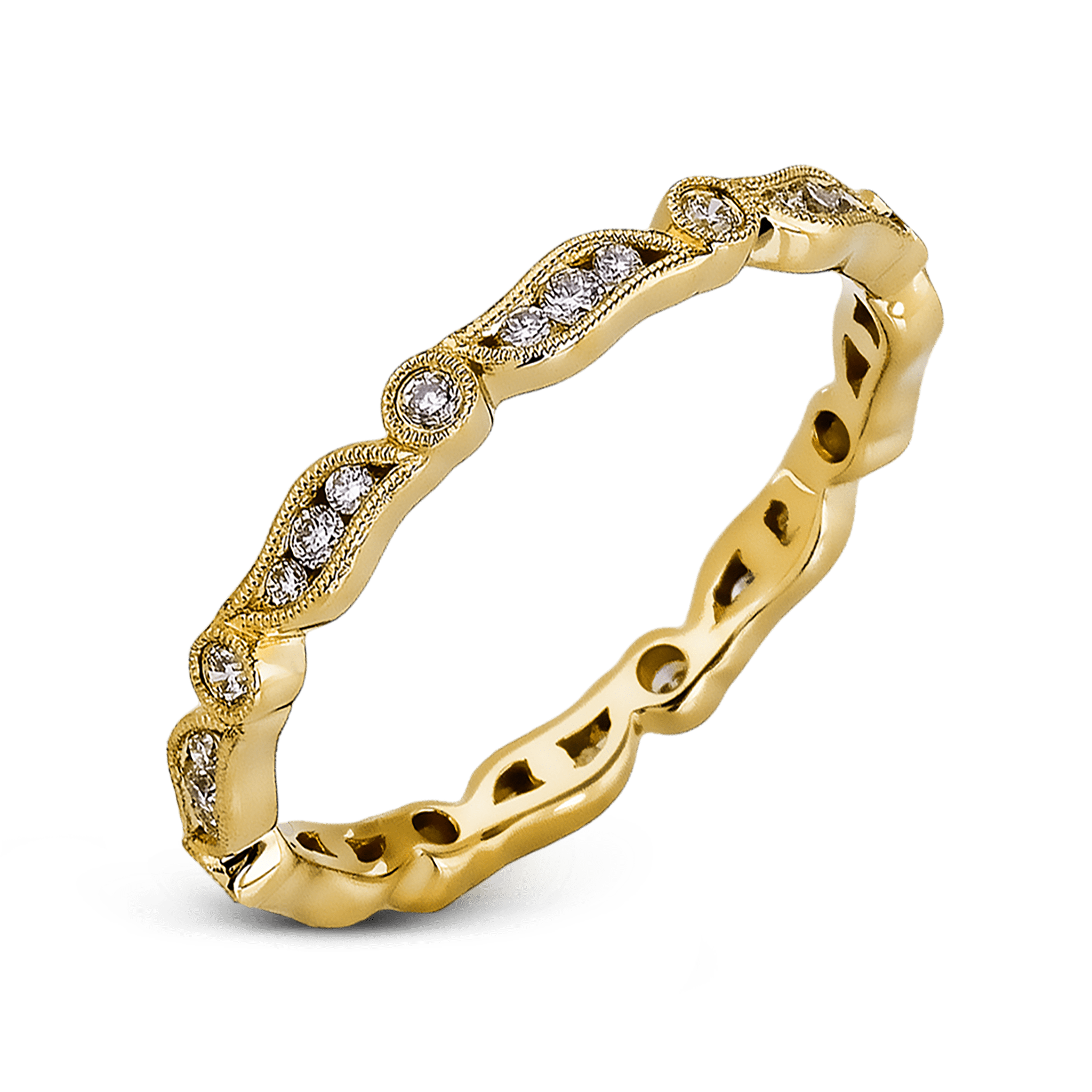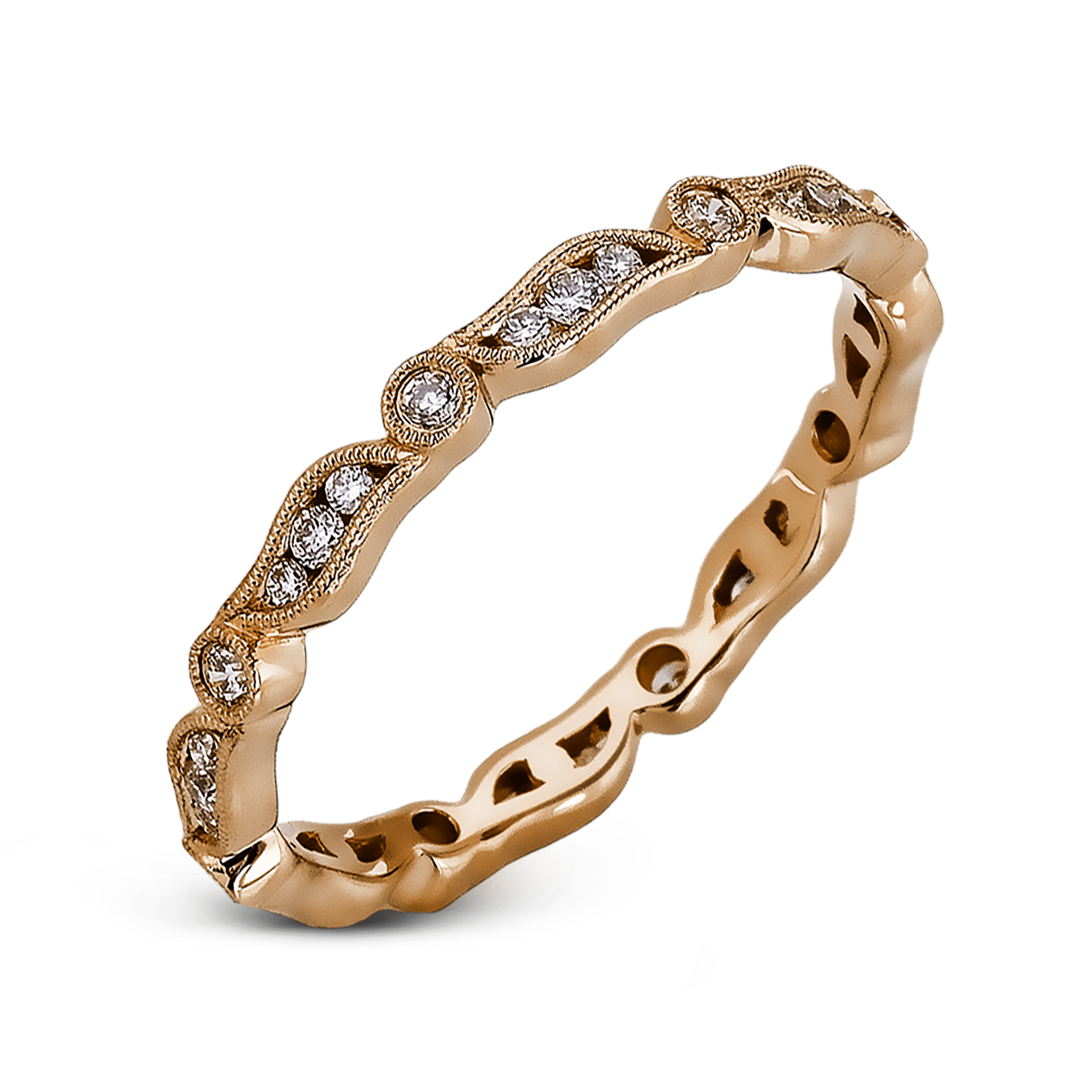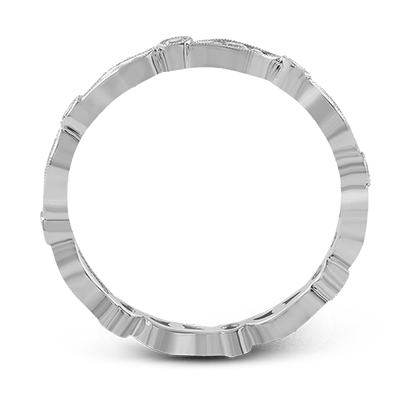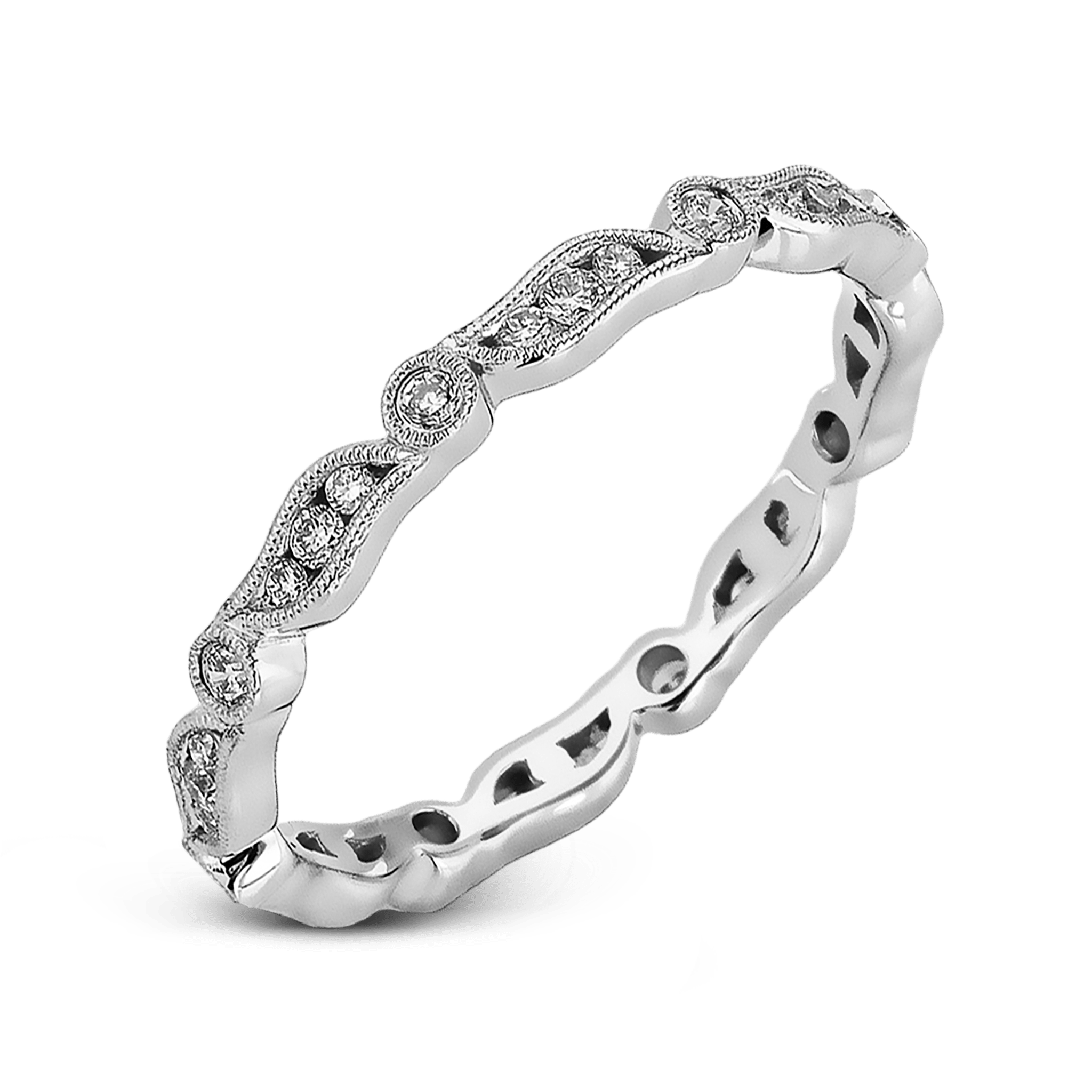 This stackable ring features a unique, contemporary design and is adorned with shimmering white diamonds.