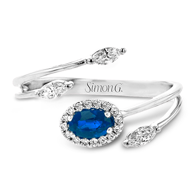 This delightful ring is sure to brighten your day - and turn heads - with its colorful gemstones, sparkling diamonds and unique bypass design.