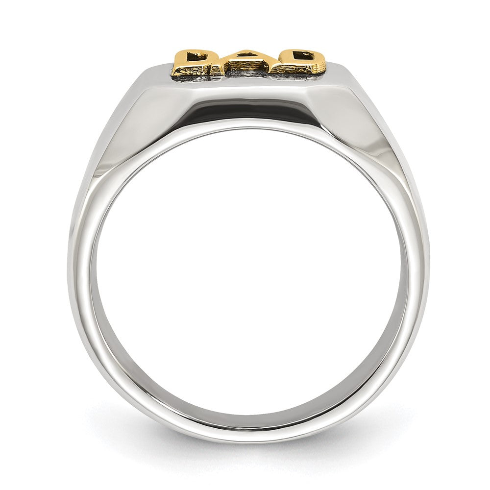 Chisel Stainless Steel Polished with 14K Gold Accent DAD with Black Enamel Signet Ring