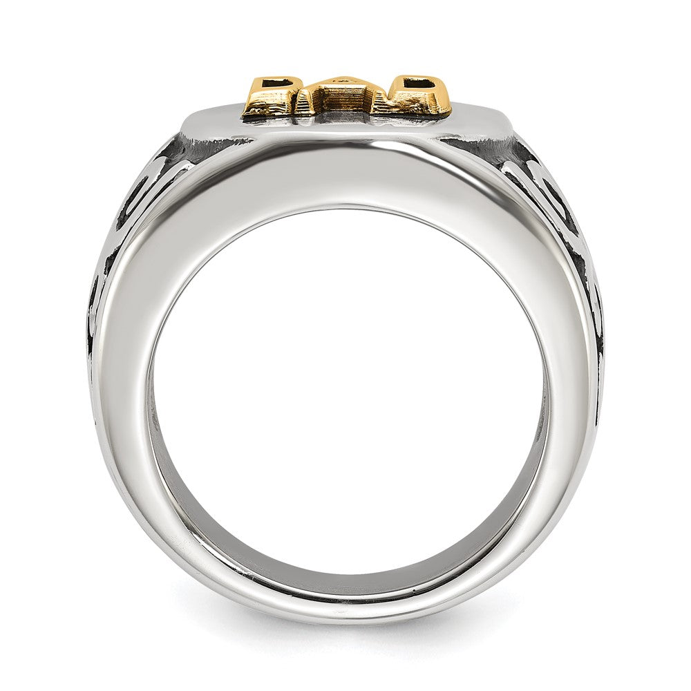 Chisel Stainless Steel Polished with 14K Gold Accent and .01ct Diamond DAD with Black Enamel Shield Ring