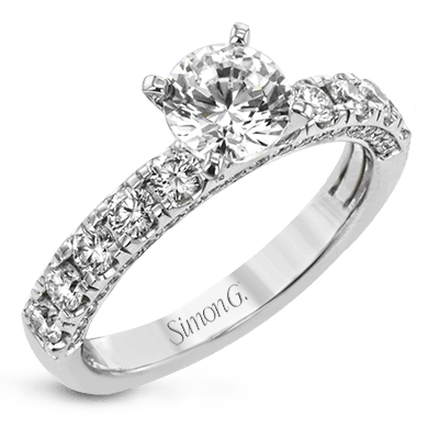 This engagement ring is sure to shine with a classic, straight design adorned with sparkling white diamonds.