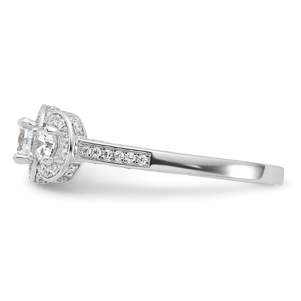 Cheryl M Sterling Silver Rhodium-plated Brilliant-cut CZ Three Stone Halo w/ Side Stones Ring