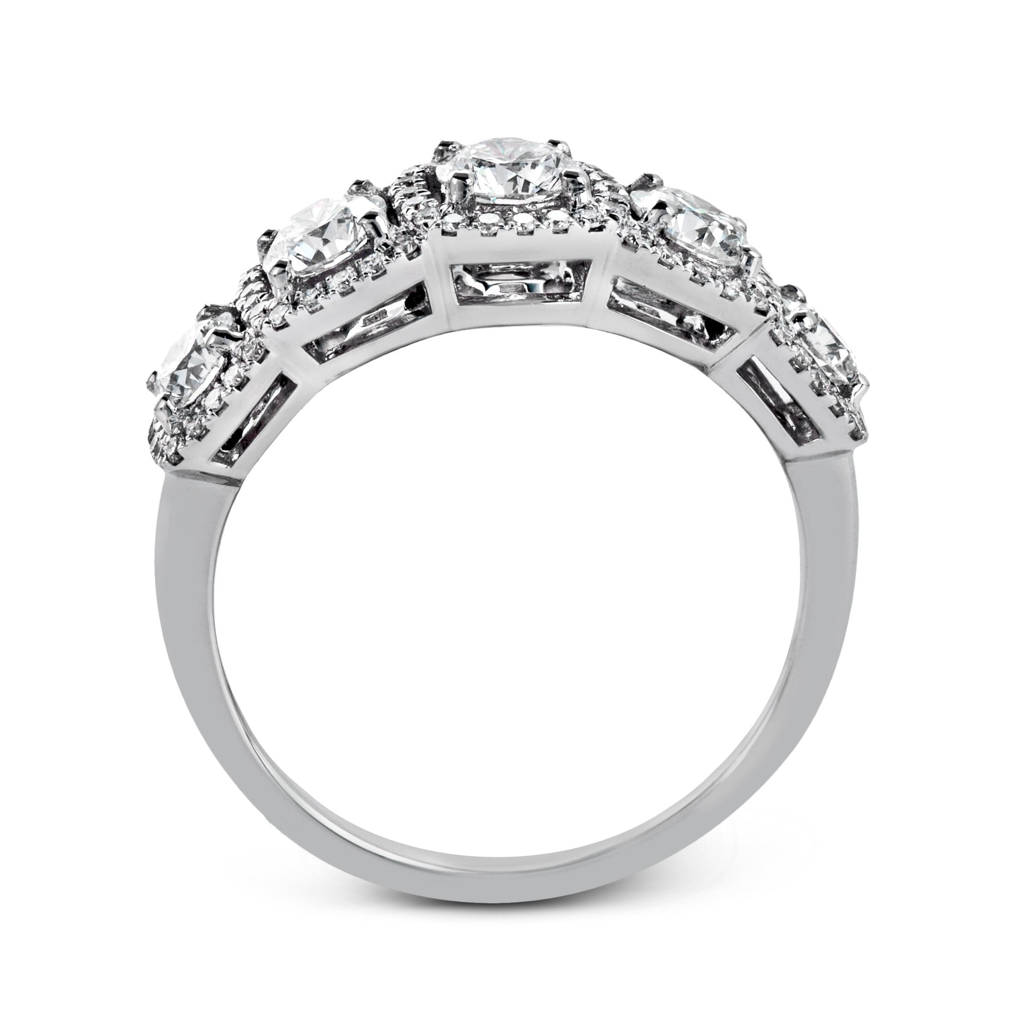 This eye-catching band features a modern design and exquisite halos set with glistening white diamond accents.