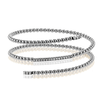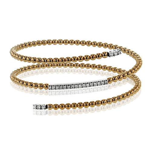 This fun 18k rose gold bangle is formed in a spiral shape and contains .42 ctw of brilliant white diamonds. Perfect for stacking.