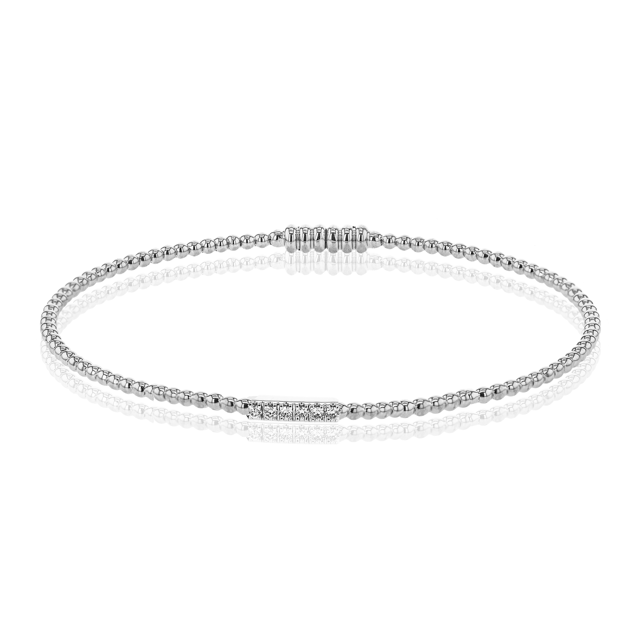 This elegant bangle features a beaded design accented with brilliant diamonds as well as a magnetic enclosure.