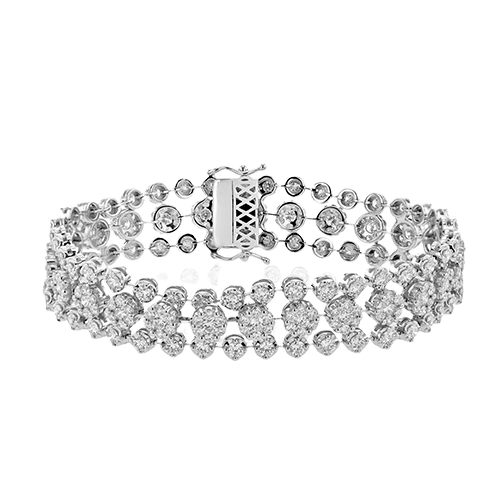 This brilliantly bold bracelet makes quite a statement with a mesh design that features an eye-catching array of sparkling white diamonds.