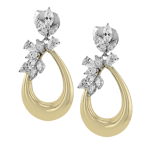 These beautiful earrings feature a two-tone design adorned with floral clusters of sparkling marquise and pear diamonds.