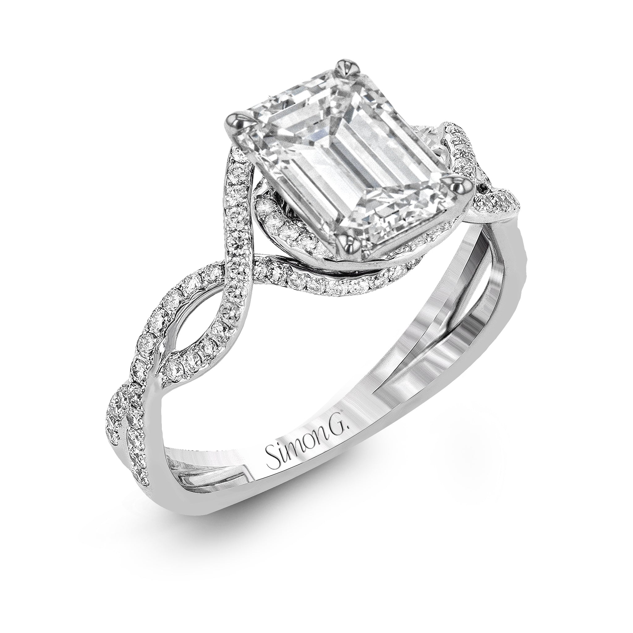 Emerald-Cut Criss-Cross Engagement Ring In 18k Gold With Diamonds LP2304-EM WHITE 18K SEMI