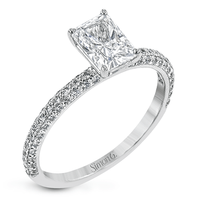 Emerald-cut Criss-cross Engagement Ring & Matching Wedding Band in 18k Gold with Diamonds MR1577-EM WHITE 18K SET