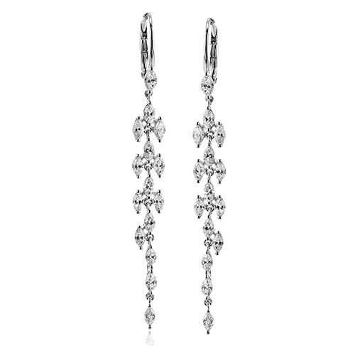 These elegantly distinctive earrings sparkle with shimmering clusters of marquise diamonds.