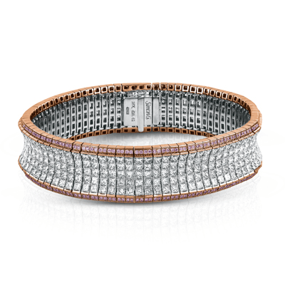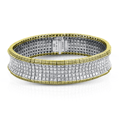 This dazzling, contemporary bracelet is crafted with our patented Simon-set design technique and is adorned with an eye-catching combination of shimmering round and princess diamonds.