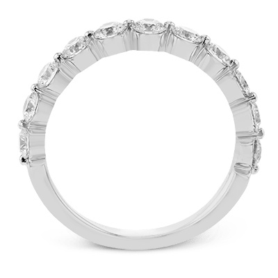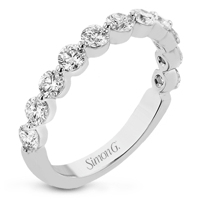 This modern wedding band features sparkling white diamonds in a bubble setting designed to highlight each individual stone.