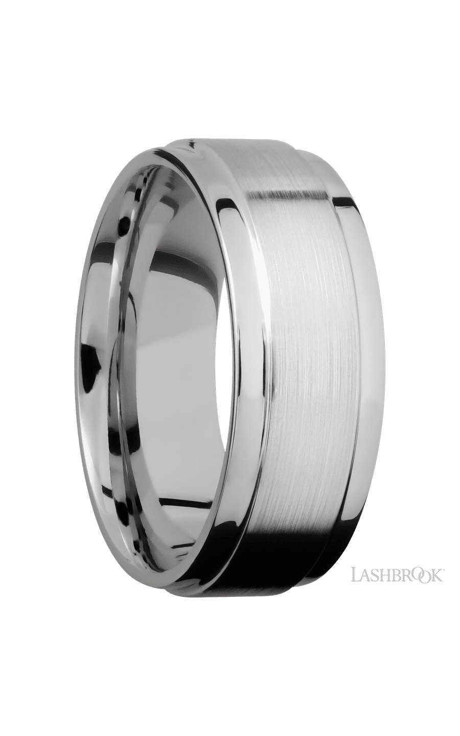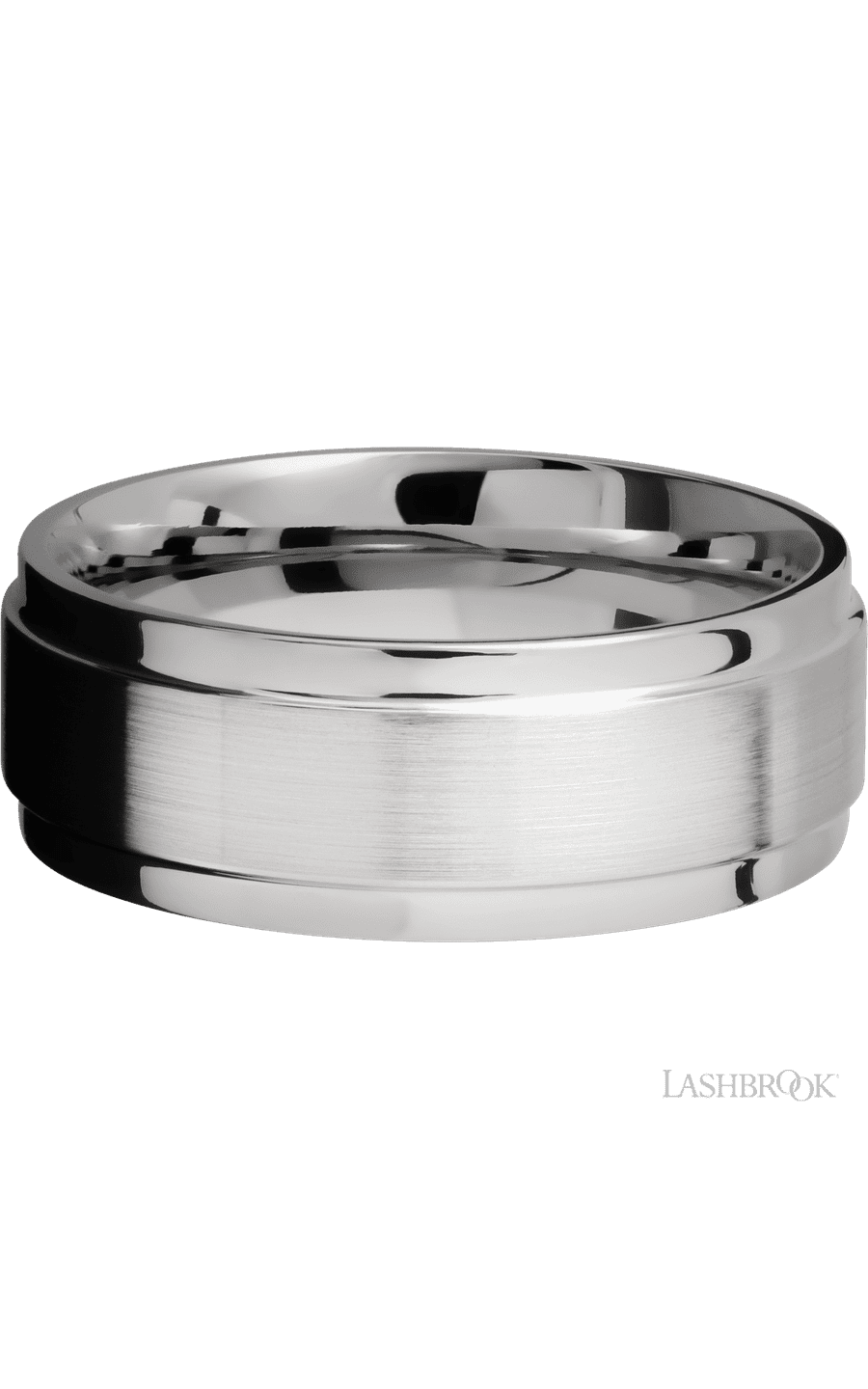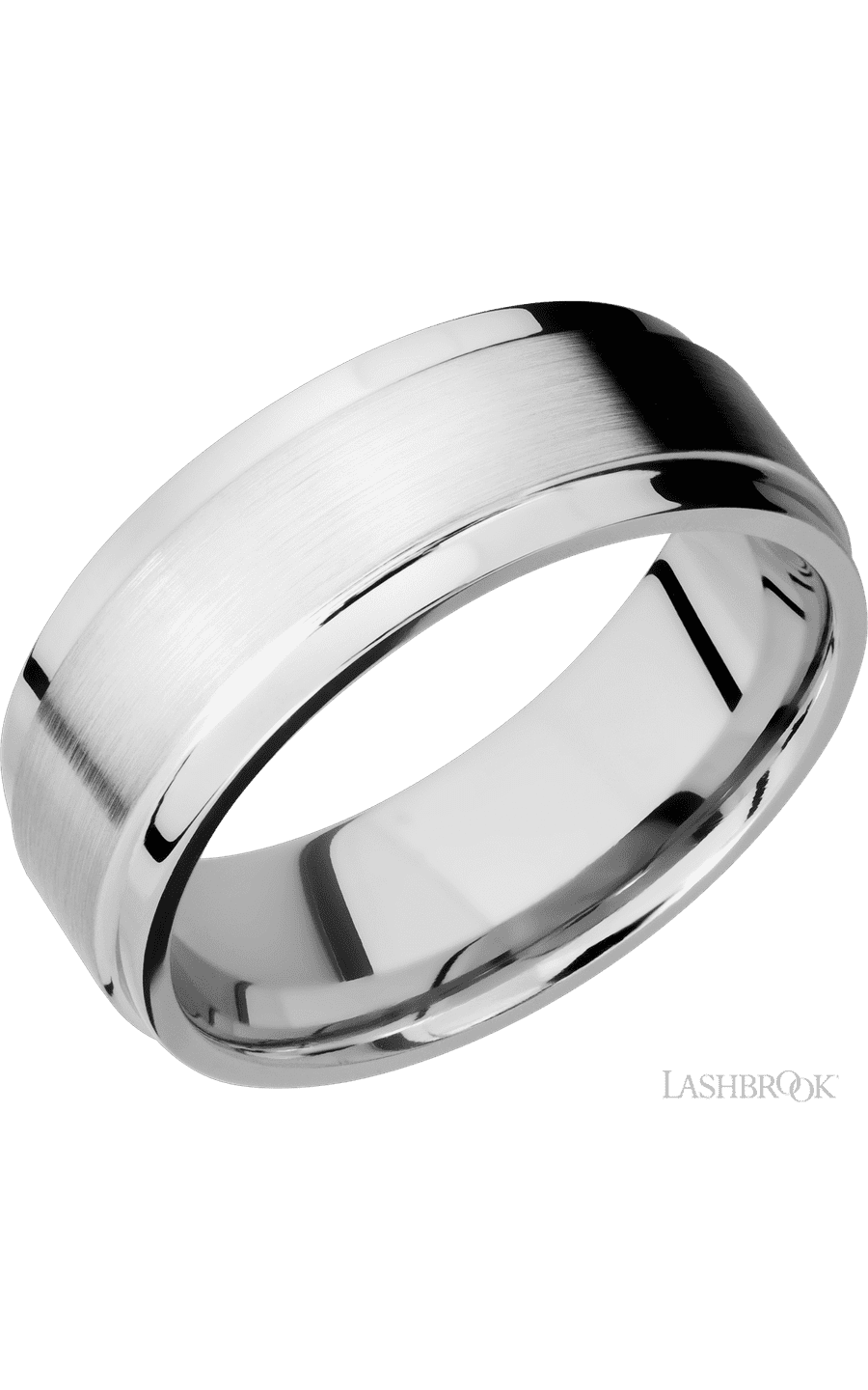 8 mm wide Flat Wide Grooved Edges 14K White Gold band.