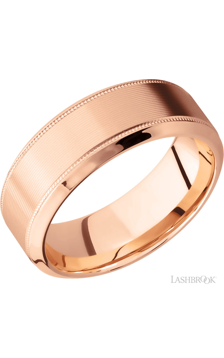 14KR8HB2UMIL-P 8 mm wide High Bevel Milgrain 14K Rose Gold band.