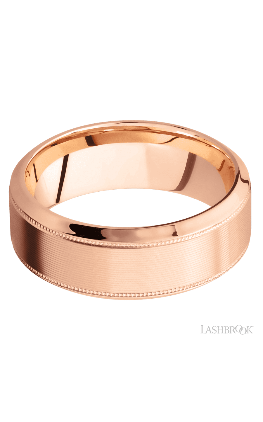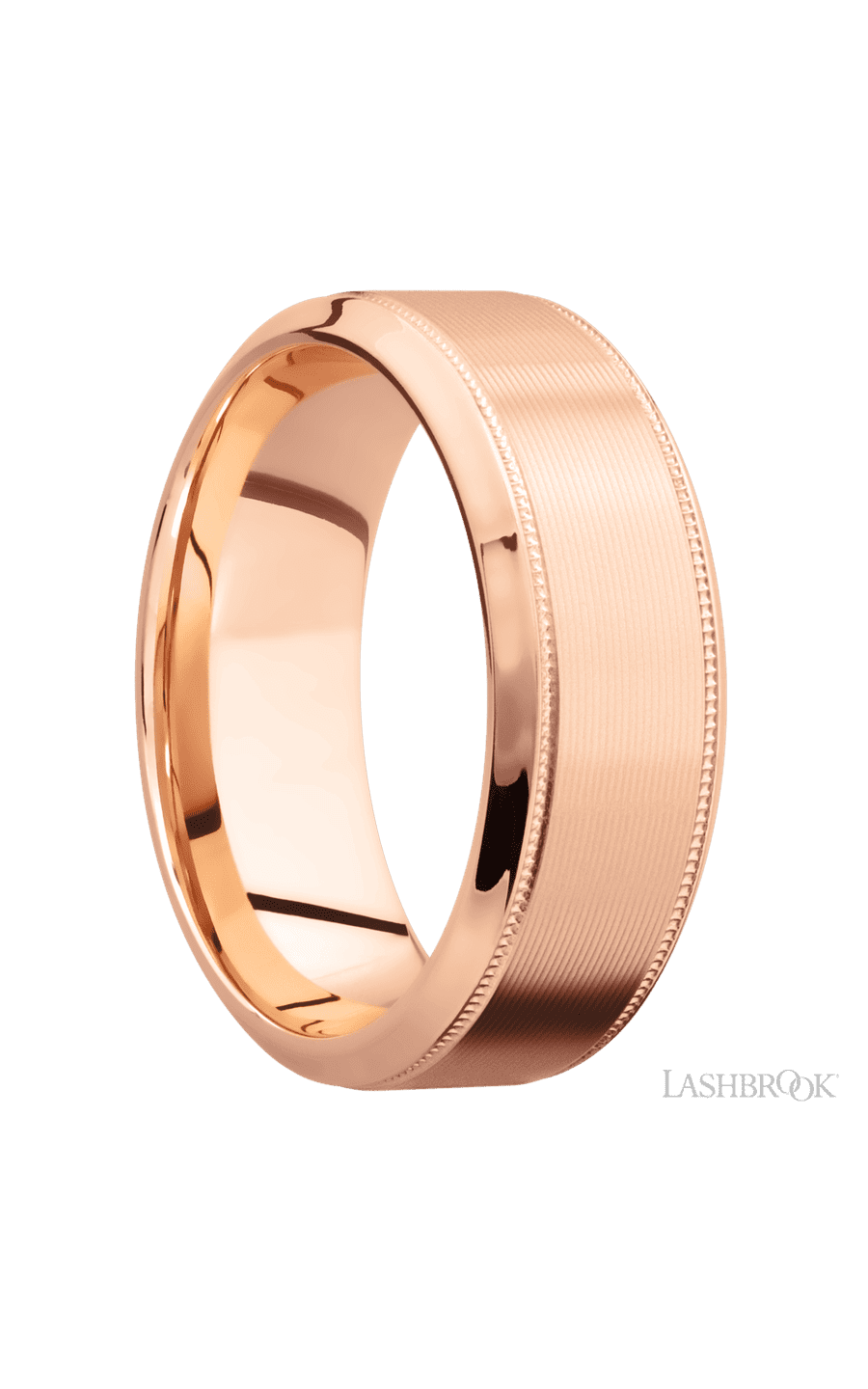 8 mm wide High Bevel Milgrain 14K Rose Gold band.