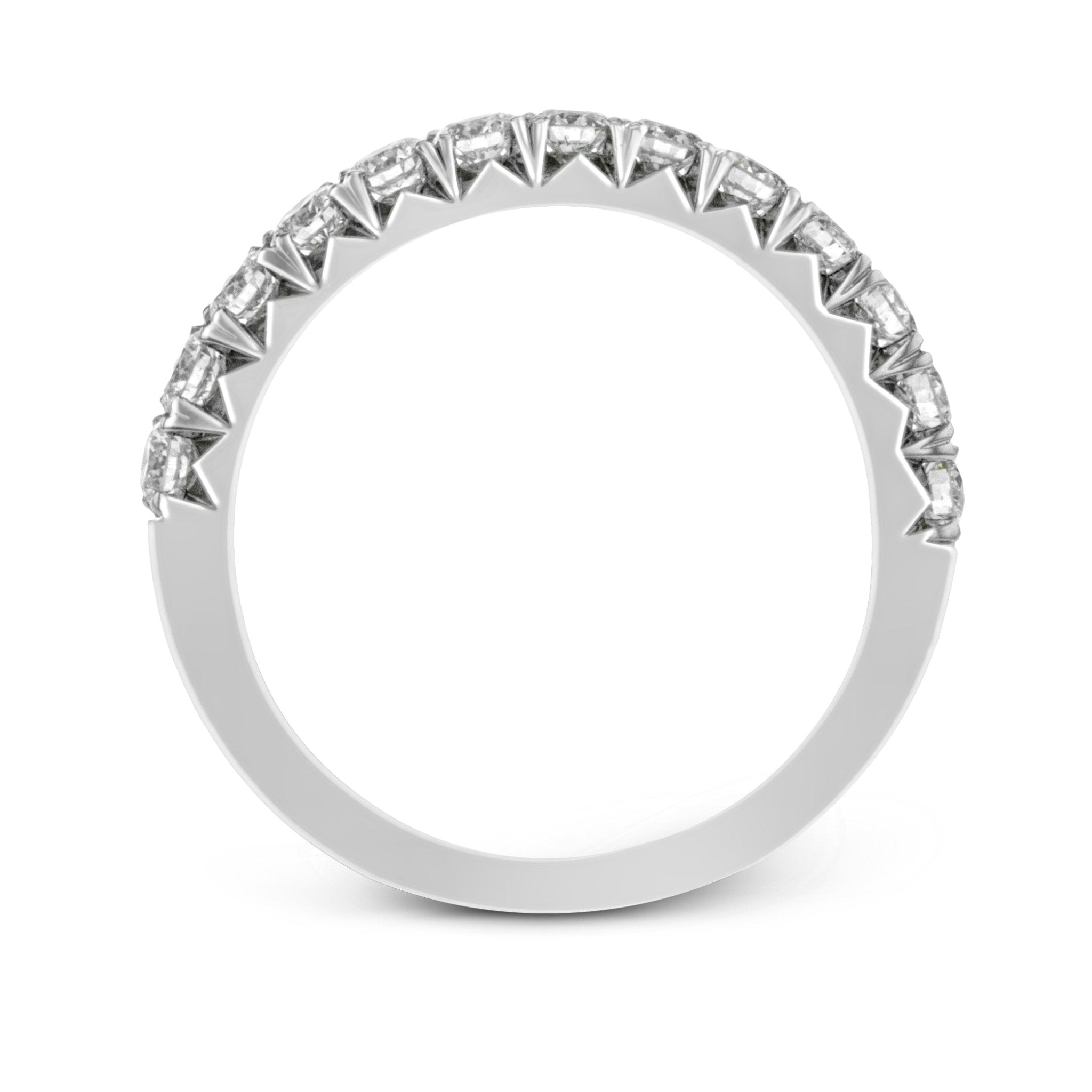 This beautiful band features an intricate design with brilliant diamonds in a distinctive setting. This band pairs perfectly with an engagement ring, or can be worn on its own or stacked with other rings. it contains .50 ctw of white diamonds.