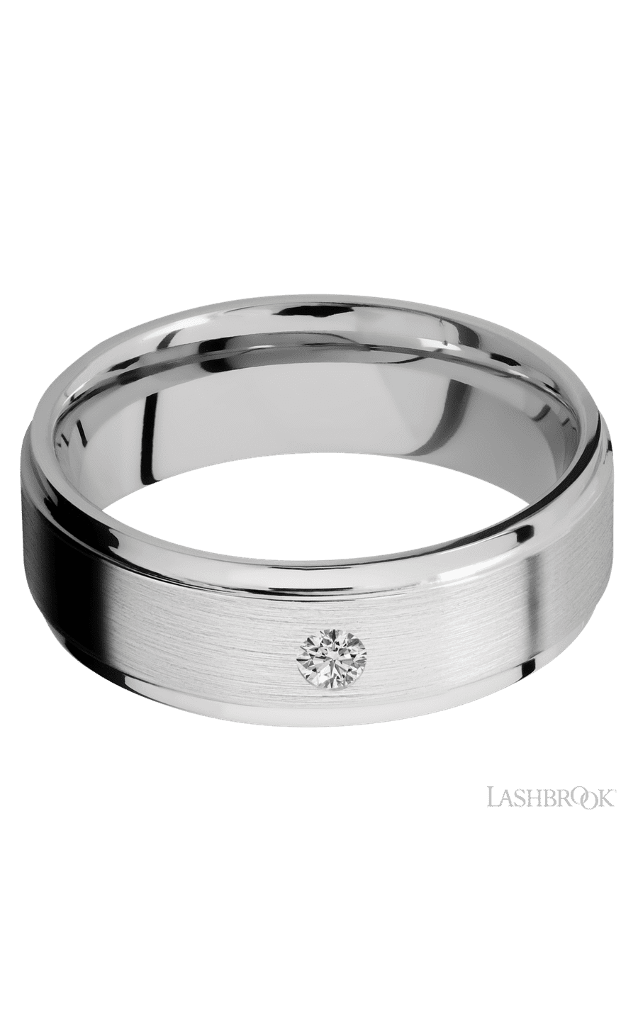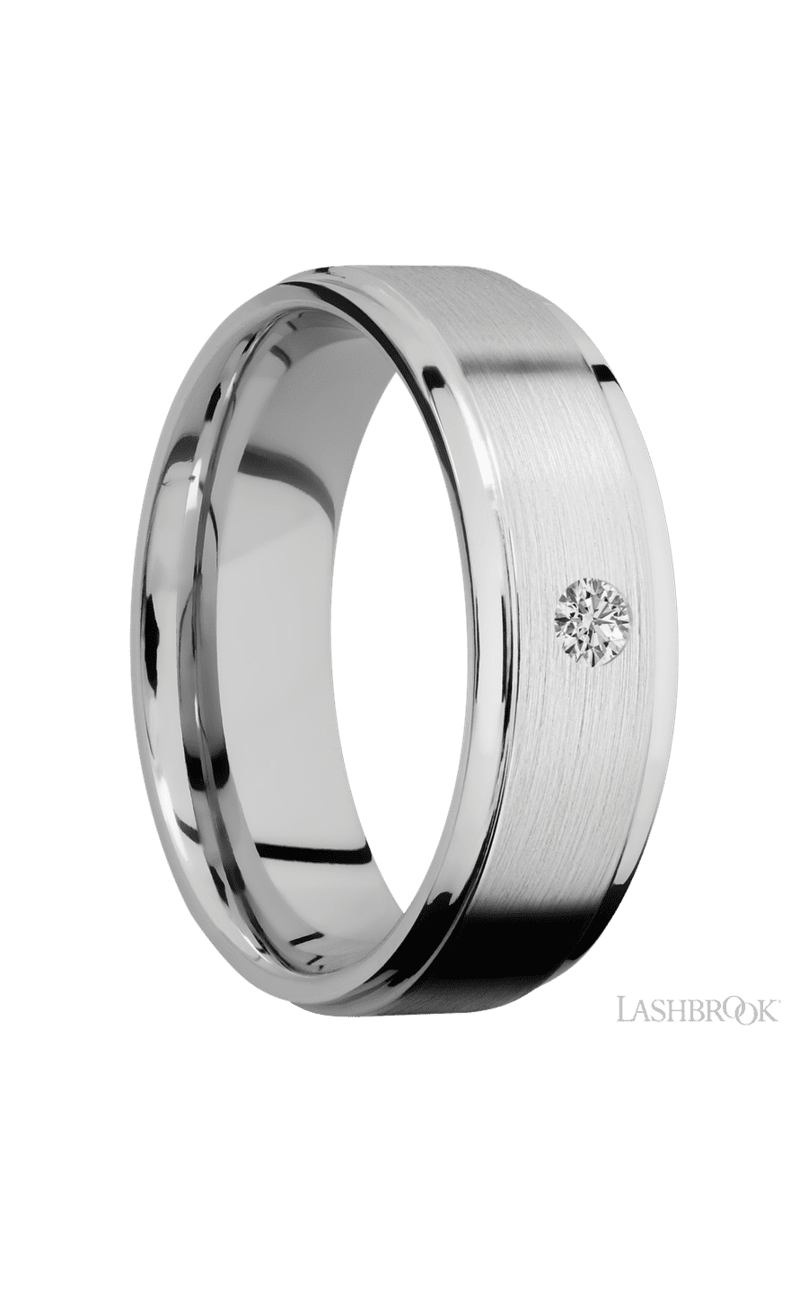 14KW7FGEDIA.10F-P 7 mm wide/Flat Grooved Edges/14K White Gold band with an arrangement of 1, .1 carat Round Diamond stones in a Flush setting.