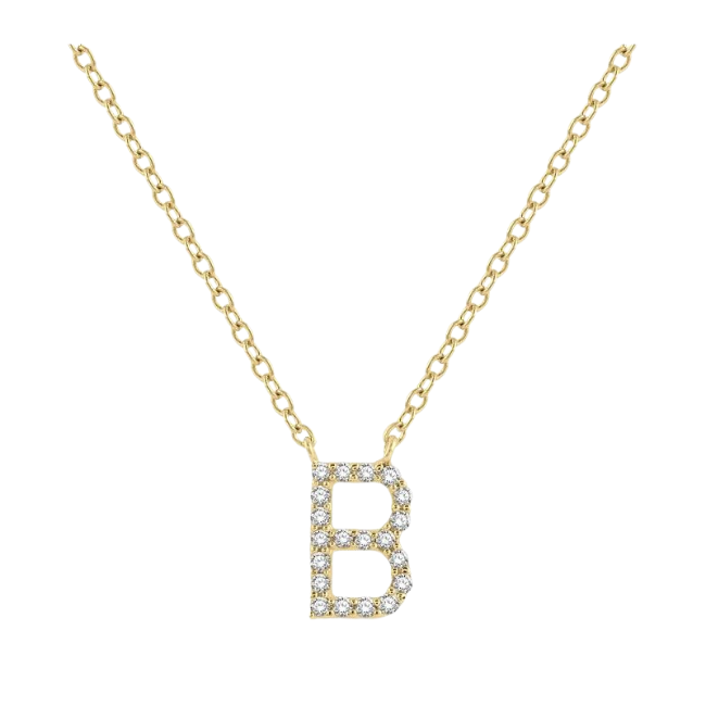 Initial pendants offer a personalized feel. Whether it is wearing one's own initials or the initials of a loved one, the initial pendant is a popular choice. It can be worn by itself or layered with other dainty pendants. So, if you have a 'B' initial in mind, this initial pendant would be a perfect buy. It is also decorated with round-cut diamonds to enhance its appeal. There is a total of 20 prong set round cut diamonds embellishing the initial pendant. A Cat chain carries the pendant, both of which are styled in 14 karat yellow gold. Total diamond weight is 1/20 ctw.