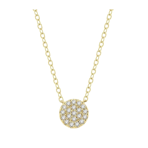 • Details: 1/8 Ctw Disc Shape Round Cut Diamond Petite Fashion Pendant With Chain in 14K Yellow Gold