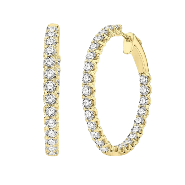 • Details: 3 Ctw Inside-Out Round Cut Diamond Hoop Earrings in 14K Yellow Gold