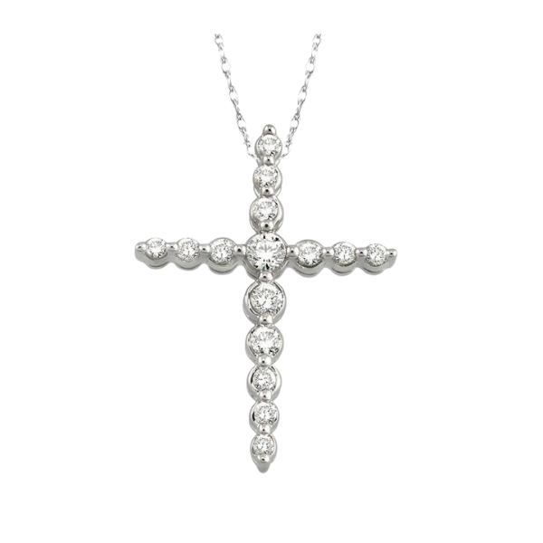 Gift your sweetheart this mesmerizing diamond journey pendant to touch her heart with your tender emotions. Fashioned in 14 karat gleaming white gold, this diamond pendant features 15 scintillating prong set round diamonds. Simple beauty and craftsmanship has very exquisitely defined the elegance of this beautiful pendant. This pendant comes with an attractive Rope chain. Total diamond weight is 1/4 ctw.
